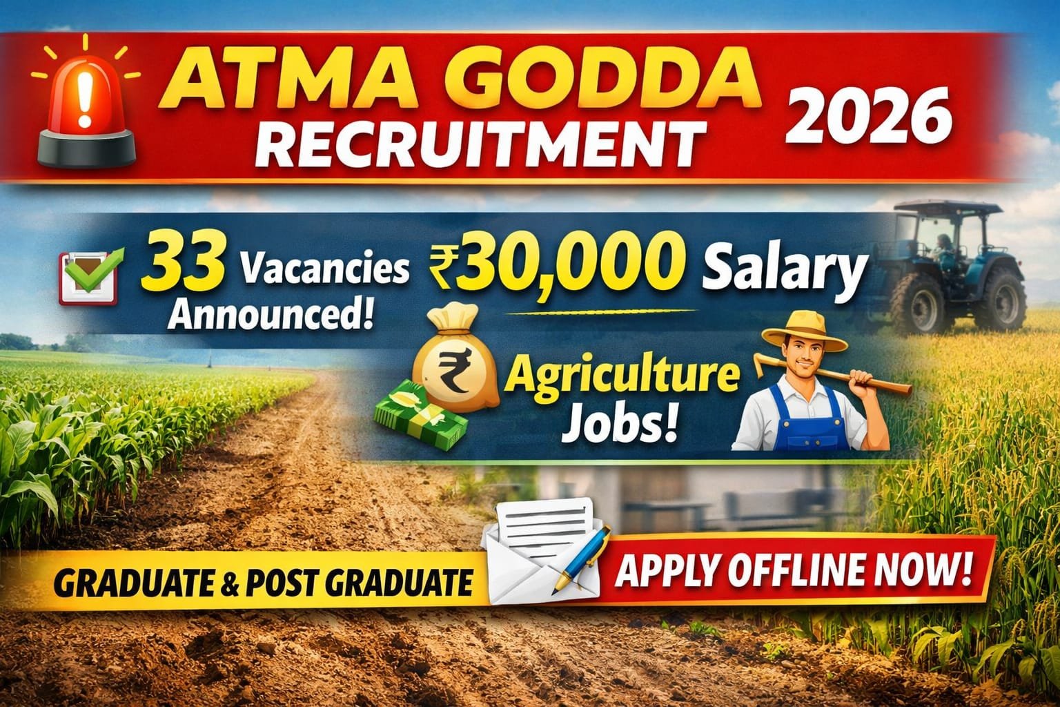 अगर आप कृषि क्षेत्र (Agriculture Sector) में करियर बनाना चाहते हैं, तो आपके लिए एक शानदार अवसर सामने आया है। Agriculture Technology Management Agency, Godda (ATMA Godda) ने वर्ष 2026 के लिए Block Technology Manager (BTM) और Assistant Technology Manager (ATM) के पदों पर भर्ती का नोटिफिकेशन जारी किया है।