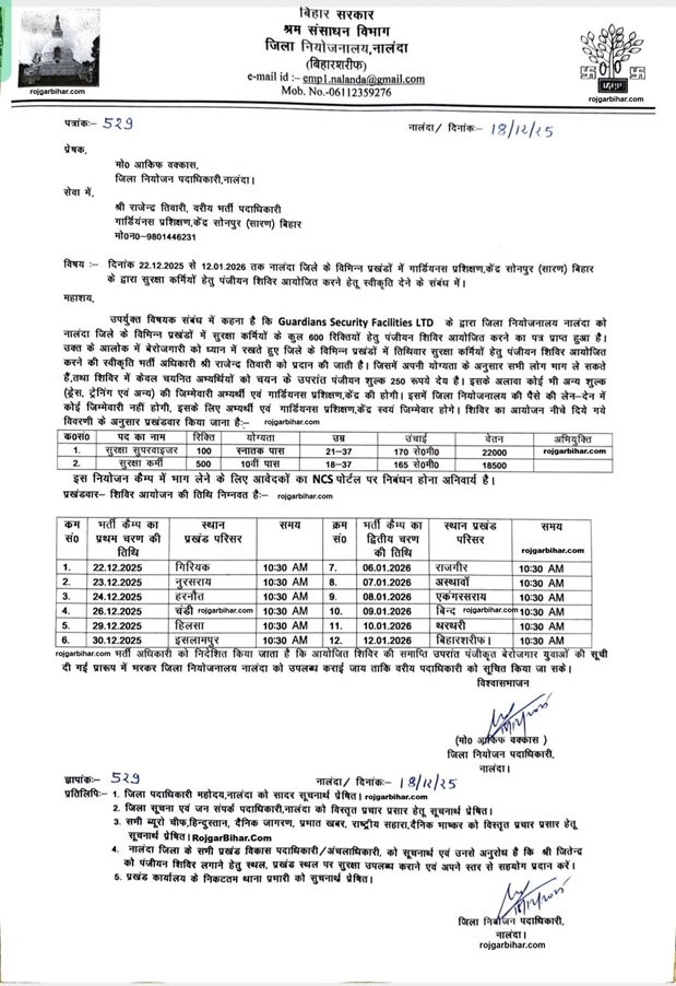भर्ती सभी जिलों में हो रही है यहाँ 1 जिले की डिटेल दया जा रहा है बाकी जिलों का डिटेल जानने के लिए निचे लिंक से अपना जिले की नियोजनालय ऑफिस से संपर्क करें।