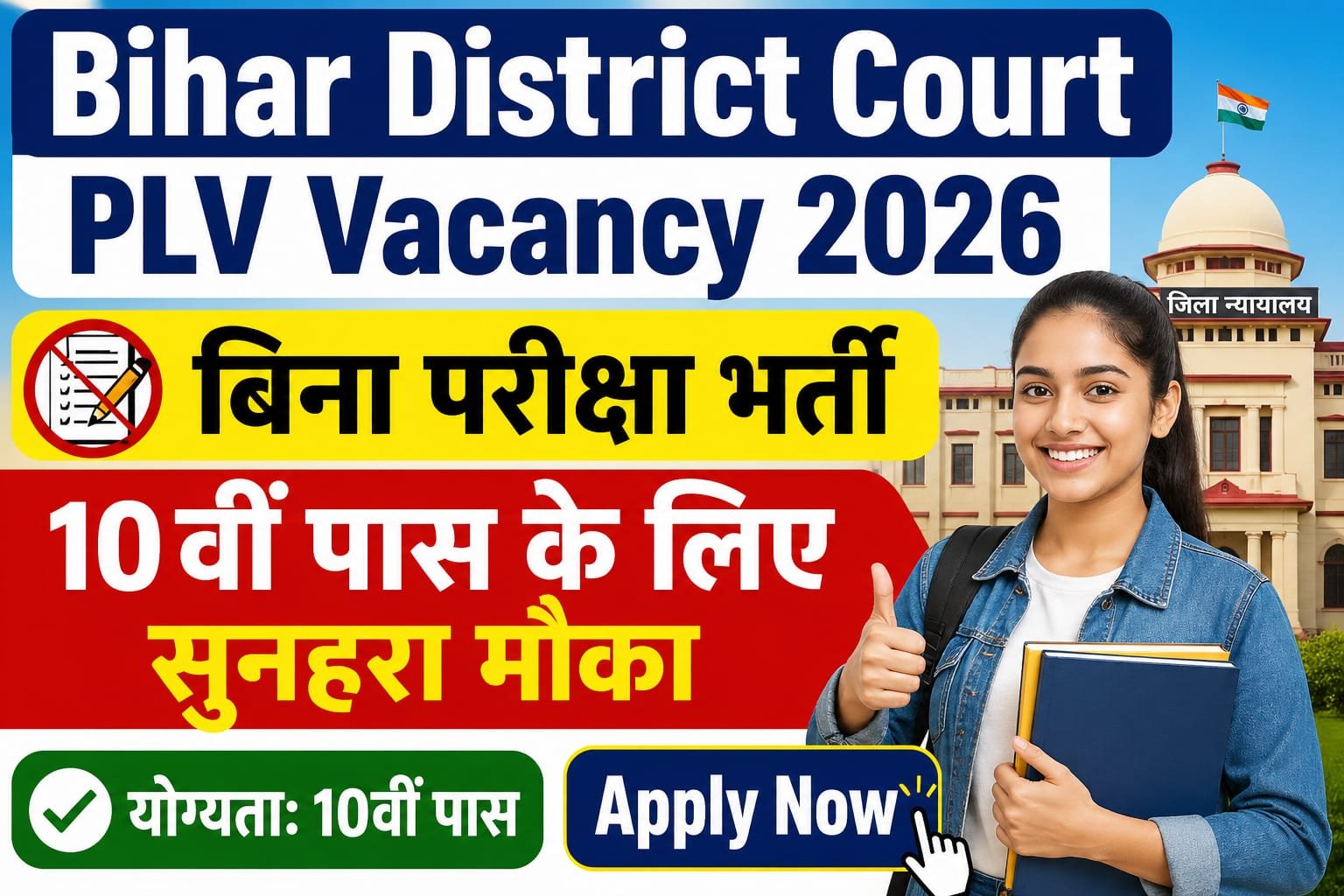 Bihar District Court PLV Vacancy 2026 उन उम्मीदवारों के लिए शानदार अवसर है जो बिना परीक्षा सरकारी व्यवस्था से जुड़ना चाहते हैं और समाज सेवा के क्षेत्र में योगदान देना चाहते हैं।