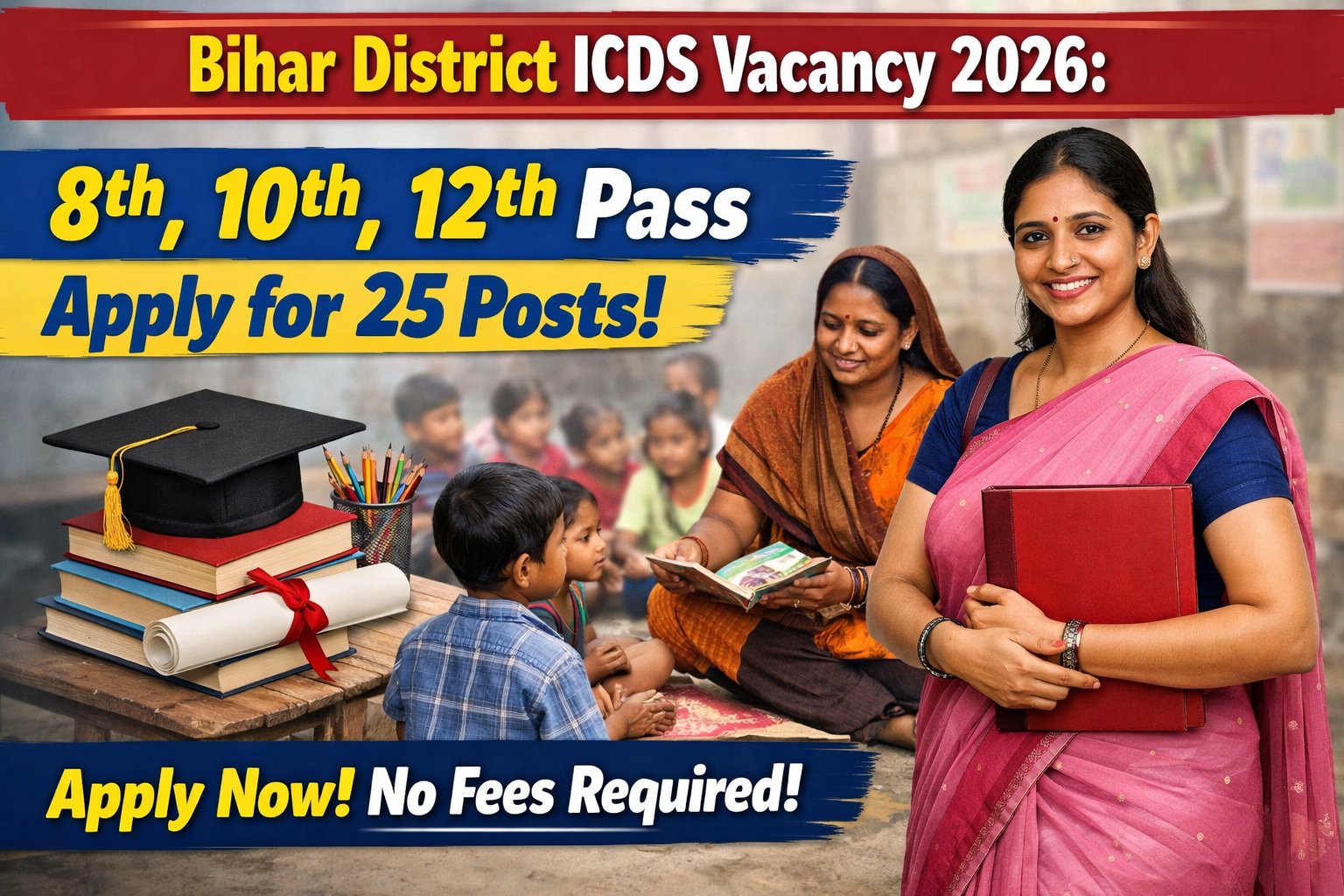 Bihar District ICDS Vacancy 2026 उन उम्मीदवारों के लिए एक बेहतरीन अवसर है जो कम शैक्षणिक योग्यता (8वीं/10वीं/12वीं) के आधार पर सरकारी नौकरी पाना चाहते हैं। इसमें आवेदन प्रक्रिया सरल है और कोई फीस नहीं है, इसलिए योग्य उम्मीदवार बिना देरी के आवेदन करें।