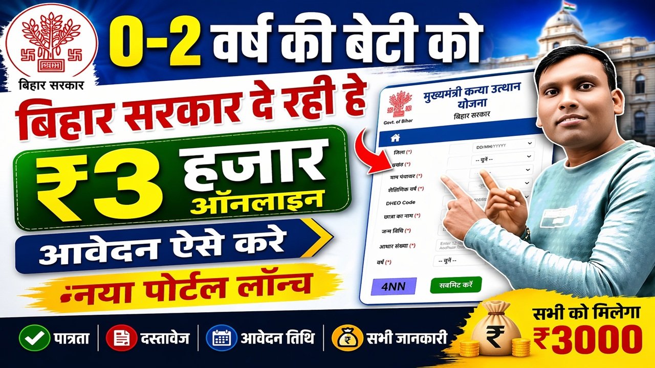 बिहार सरकार द्वारा बेटियों के भविष्य को सुरक्षित करने के लिए मुख्यमंत्री कन्या उत्थान योजना चलाई जा रही है। इस योजना के तहत 0 से 2 वर्ष की बच्चियों को आर्थिक सहायता दी जाती है। साल 2026 के लिए इसका नया पोर्टल लॉन्च कर दिया गया है, जहां से आप आसानी से ऑनलाइन आवेदन कर सकते हैं।