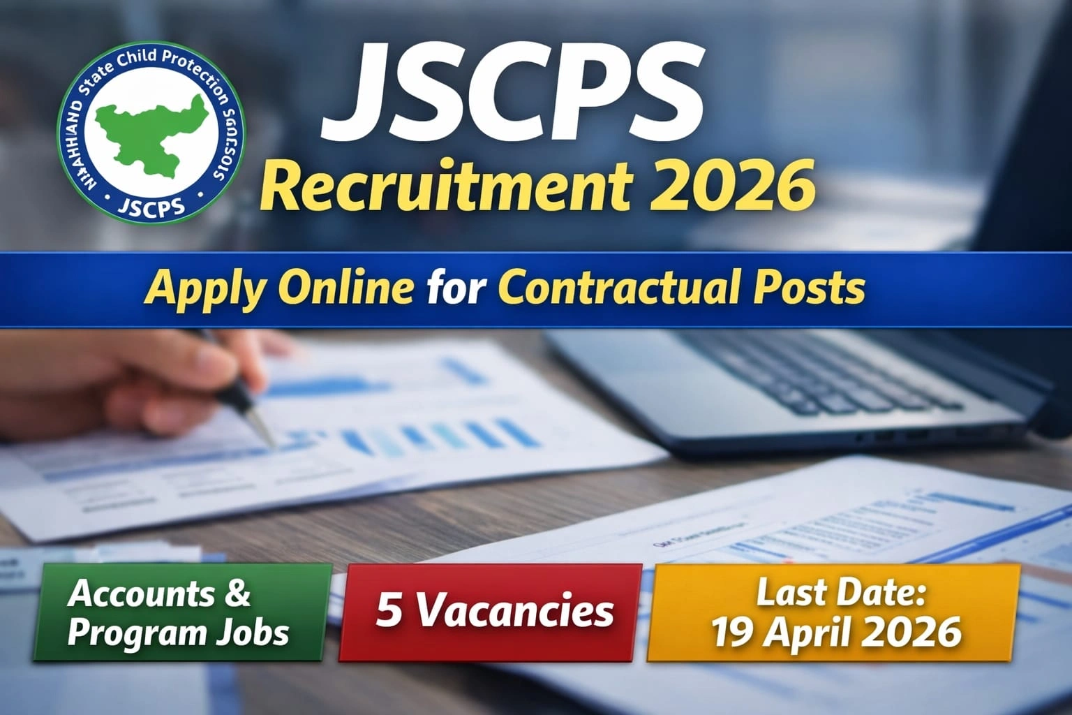 JSCPS Recruitment 2026 : झारखंड में सरकारी प्रोजेक्ट्स के तहत काम करने की इच्छा रखने वाले युवाओं के लिए बड़ी खुशखबरी है। Jharkhand State Child Protection Society (JSCPS) ने अकाउंट्स और प्रोग्राम मैनेजमेंट से जुड़े विभिन्न संविदा पदों पर भर्ती का नोटिफिकेशन जारी किया है। यह भर्ती SCPS और SARA प्रोजेक्ट्स के अंतर्गत की जा रही है, जिसमें योग्य अभ्यर्थी ऑनलाइन आवेदन कर सकते हैं।