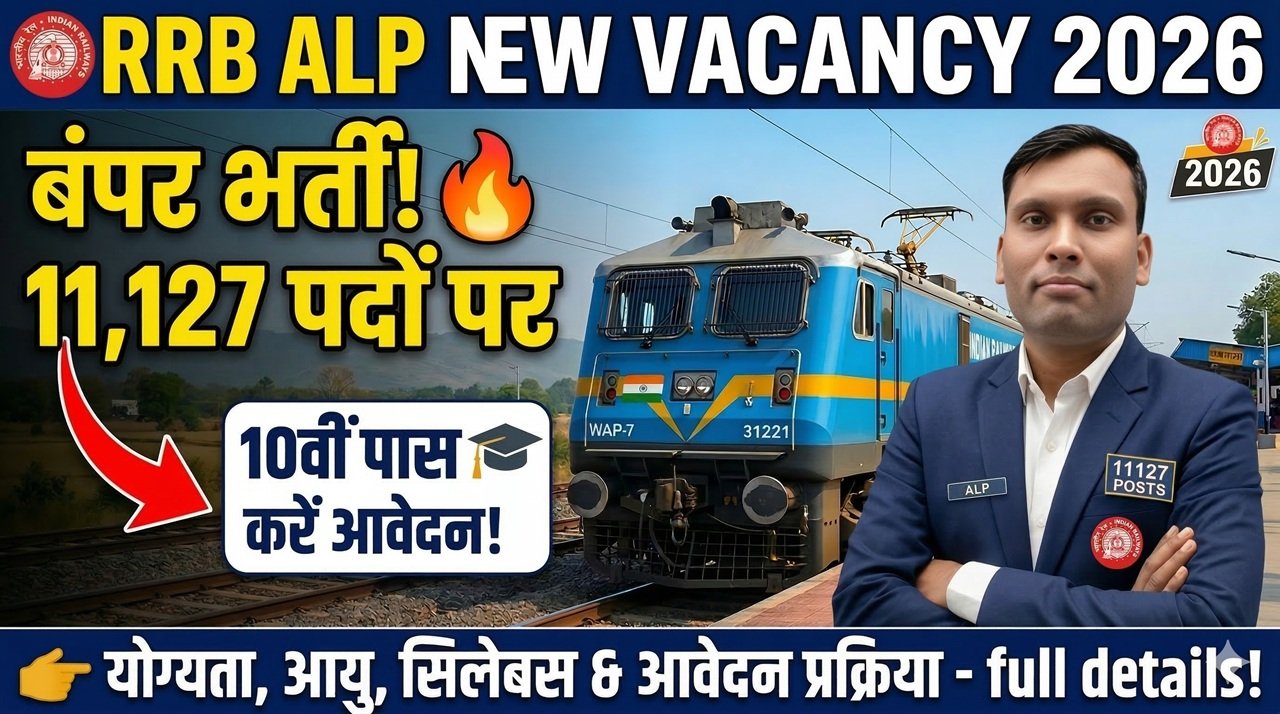 भारतीय रेलवे में सरकारी नौकरी की तैयारी कर रहे युवाओं के लिए बड़ी खुशखबरी है। रेलवे भर्ती बोर्ड (RRB) ने Assistant Loco Pilot (ALP) भर्ती 2026 के लिए नया नोटिस जारी किया है। इस भर्ती के तहत देशभर के विभिन्न रेलवे जोनों में कुल 11,127 पदों पर भर्ती की जाएगी।