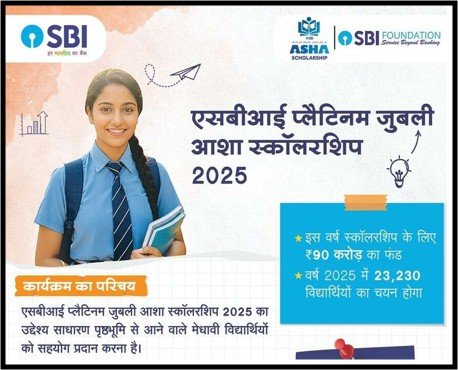 SBI Platinum Jubilee Asha Scholership 2025 For 9th/10th/12th/Graduate/Post Graduate Studants : ऑनलाइन आवेदन, योग्यता, और पूरी जानकारी