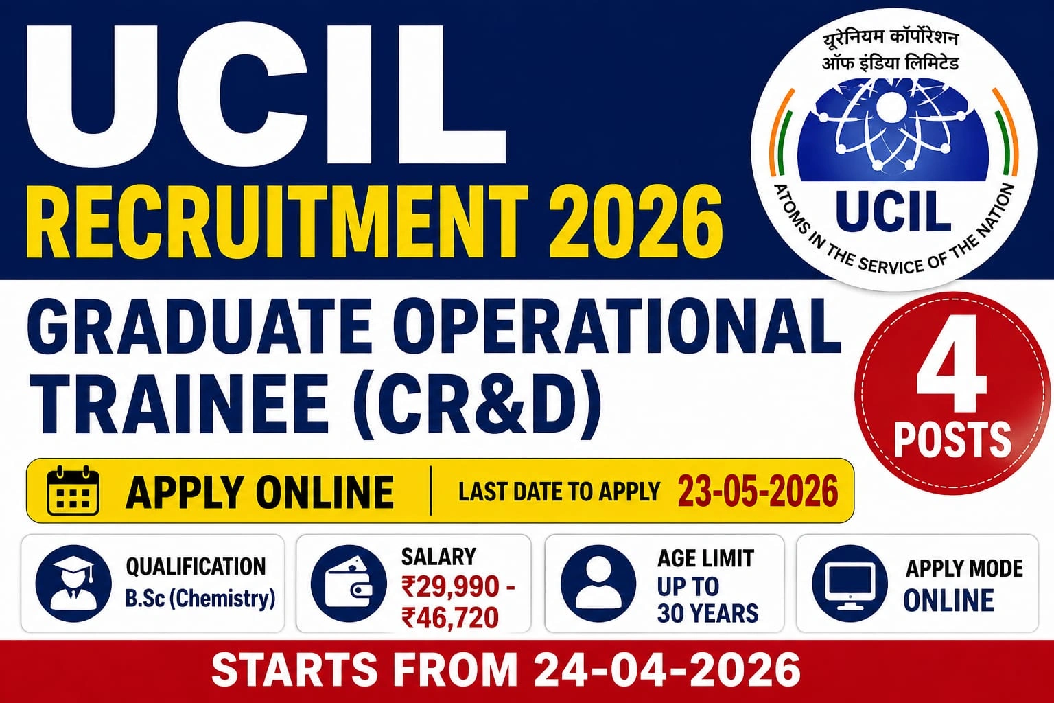 UCIL Recruitment 2026: अगर आप साइंस बैकग्राउंड से हैं और सरकारी नौकरी की तैयारी कर रहे हैं, तो आपके लिए बड़ी अपडेट है। UCIL Graduate Operational Trainee Recruitment 2026 के तहत कुल 4 पदों पर भर्ती निकाली गई है। इस भर्ती में B.Sc (Chemistry) वाले उम्मीदवार ऑनलाइन आवेदन कर सकते हैं।